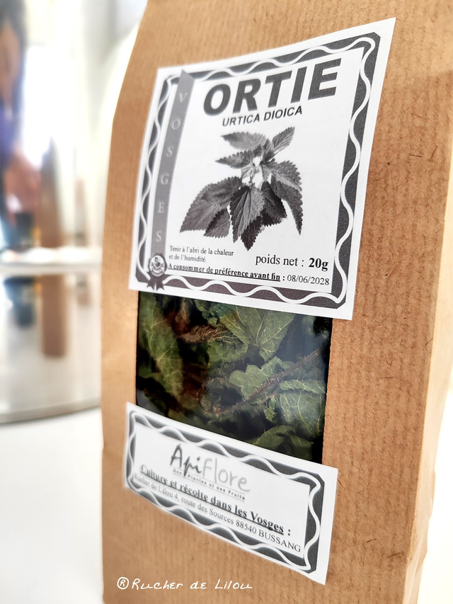 • 1x Tisane d'ortie, urtica dioica, feuilles séchées - 20g. À saupoudrer en fin de cuisson ou sur une salade